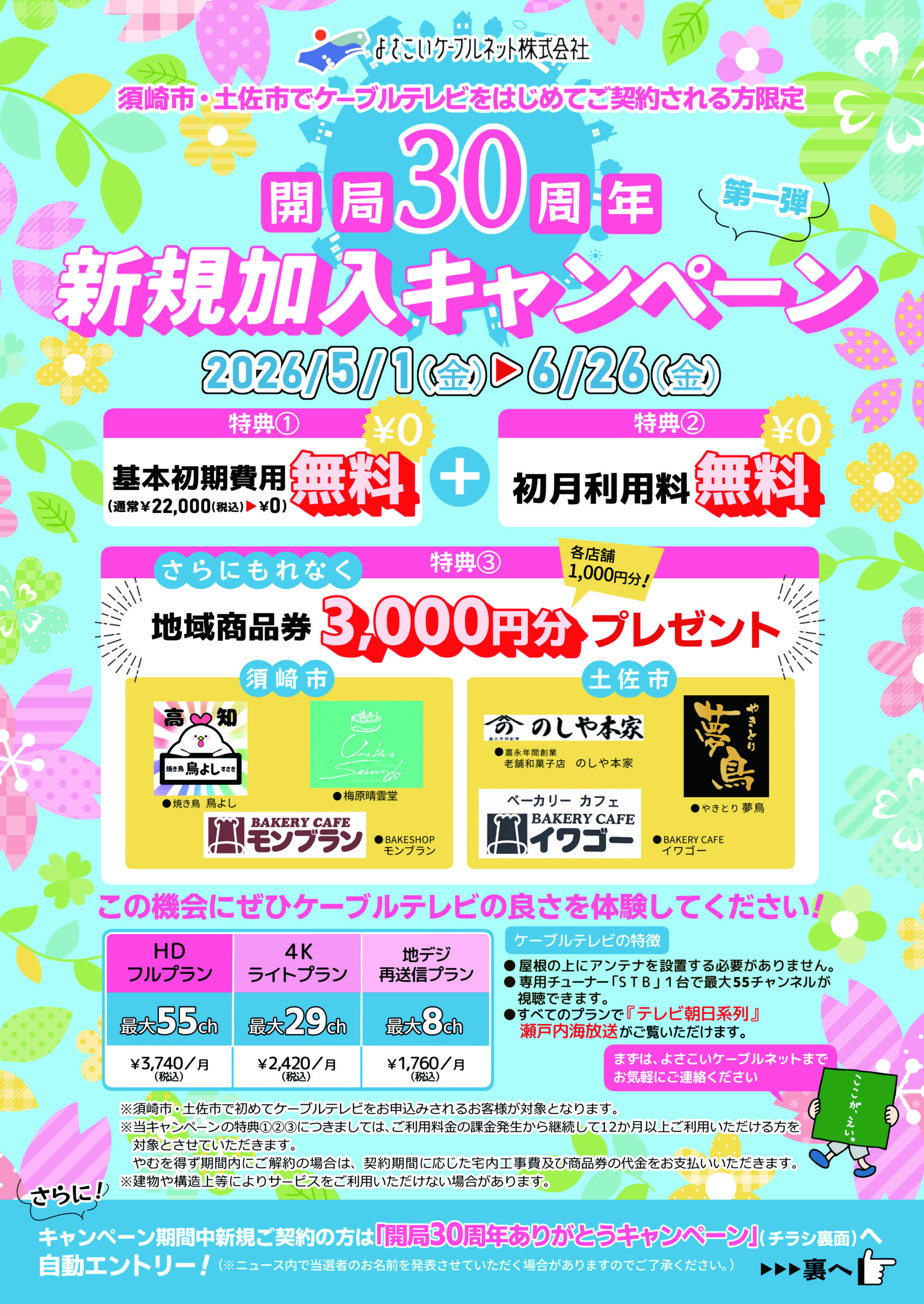 よさこいケーブルネットはおかげさまで開局30年を迎えます🌟